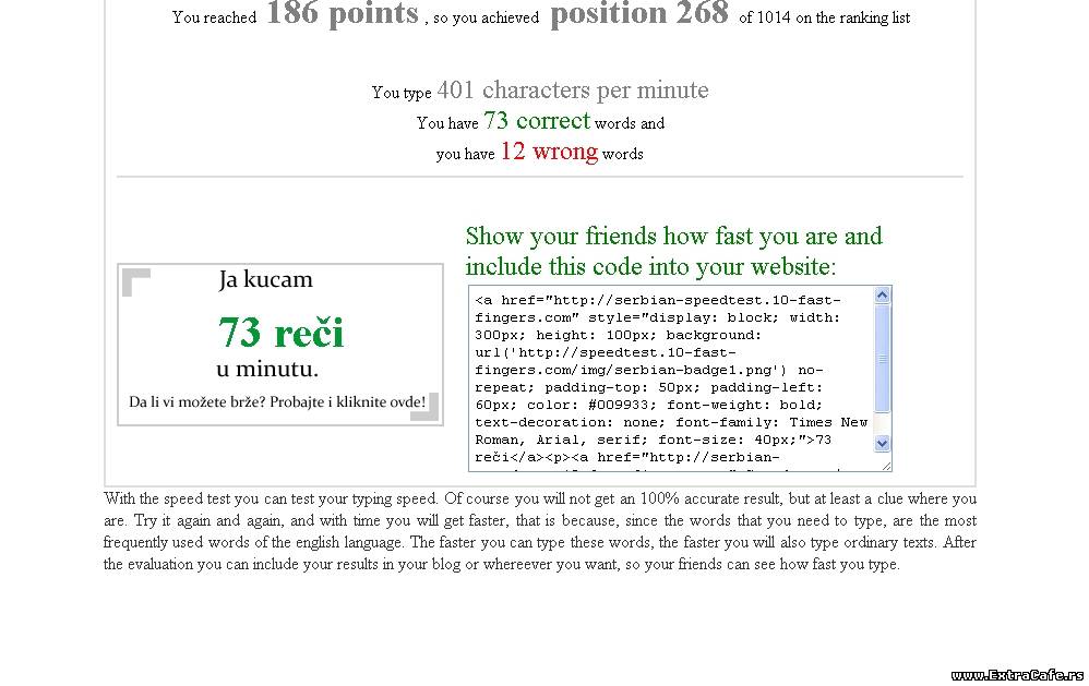 Stats: Kucas brzinom od 97 slova u minuti Tacno si iskucao 22 reci, a pogresno 2.