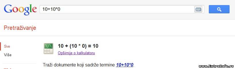 Kako, ako je postavljeno 10 + 10 x 0, onda se to racuna ovako 10 + 10 = 20 x 0 = 0