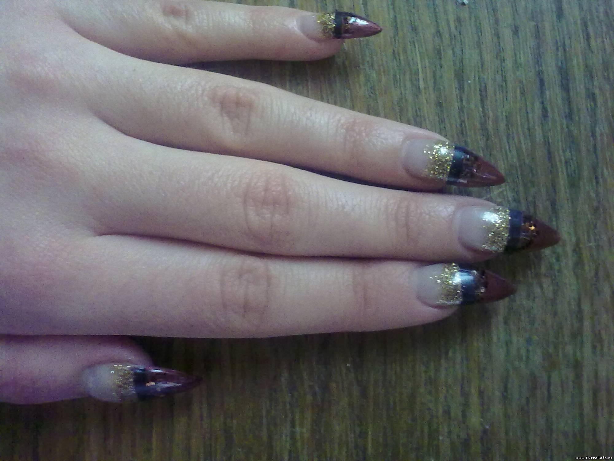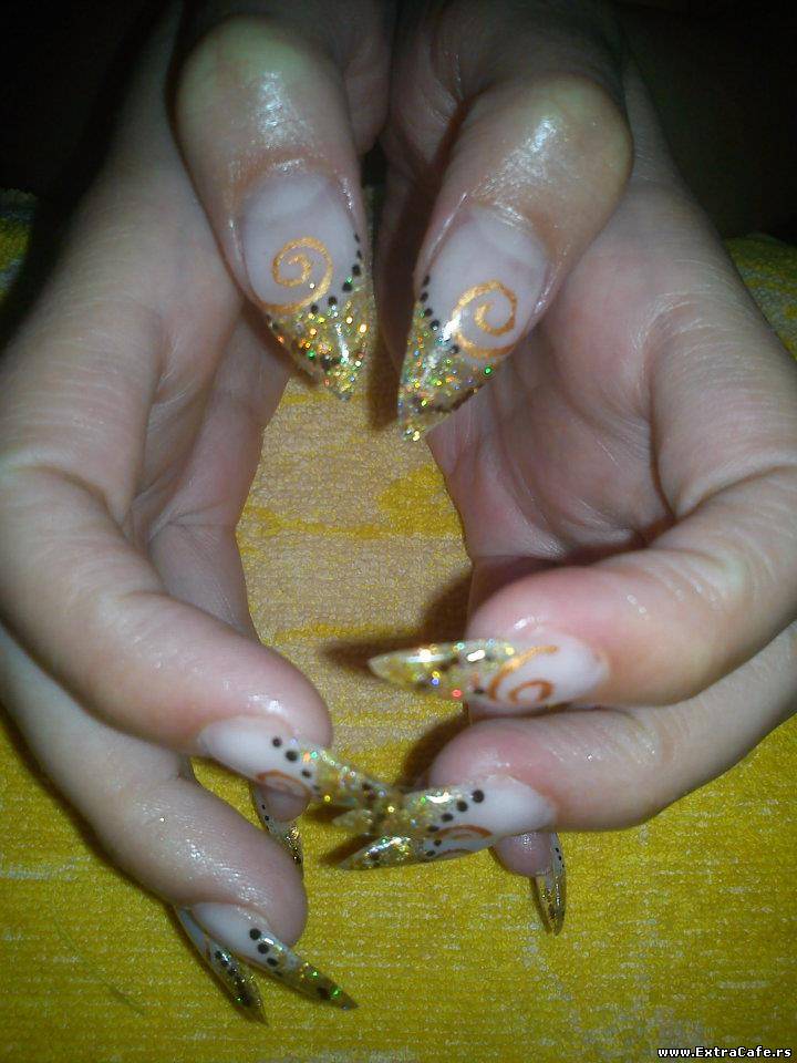 Volim lepo sredjene dugacke nokte . . .Ja zbog mog posle nemam vremena da ih stalno oblikujem, ali se trudim da budu cetvrtastog oblika i uvek lepo nalakirani, mada se cesto hvatam za french jer mi duze traje. . . .Mada ima i jedan dodatak koji volim, malo se stanje nokti navrhovima pa mogu da ogrebu :P