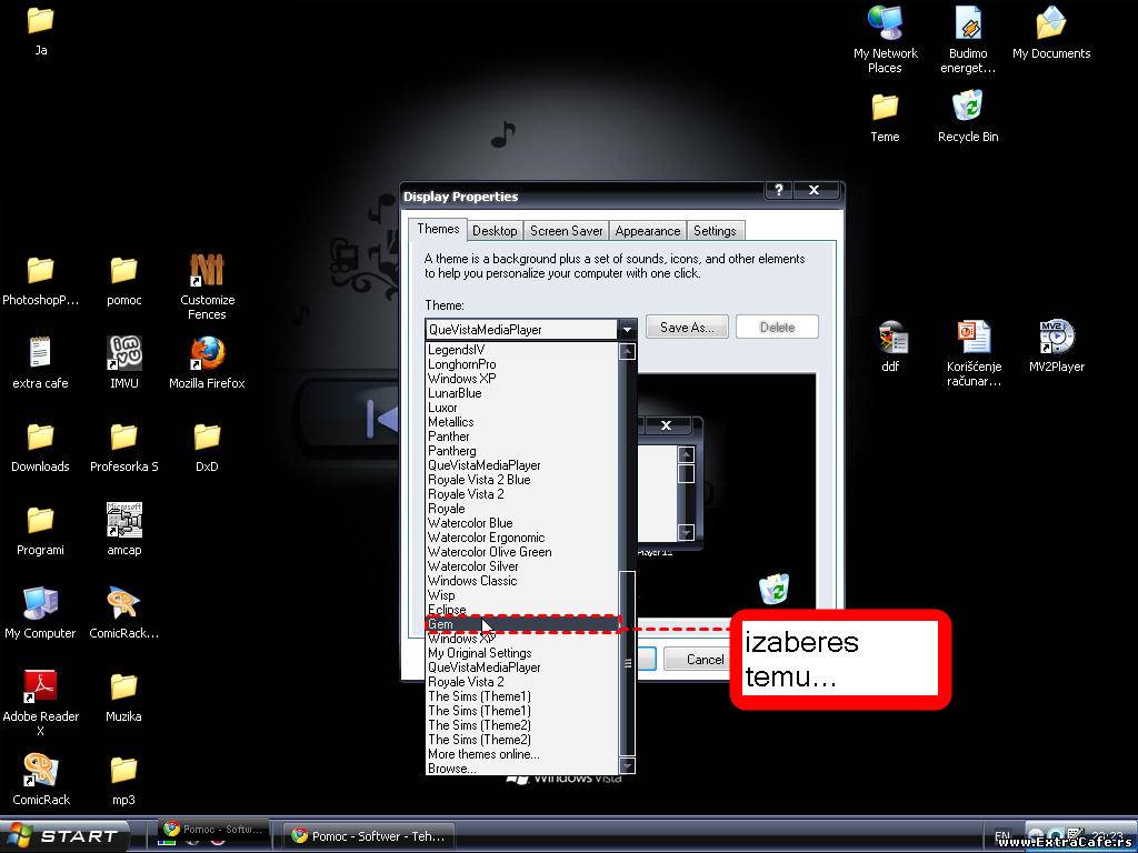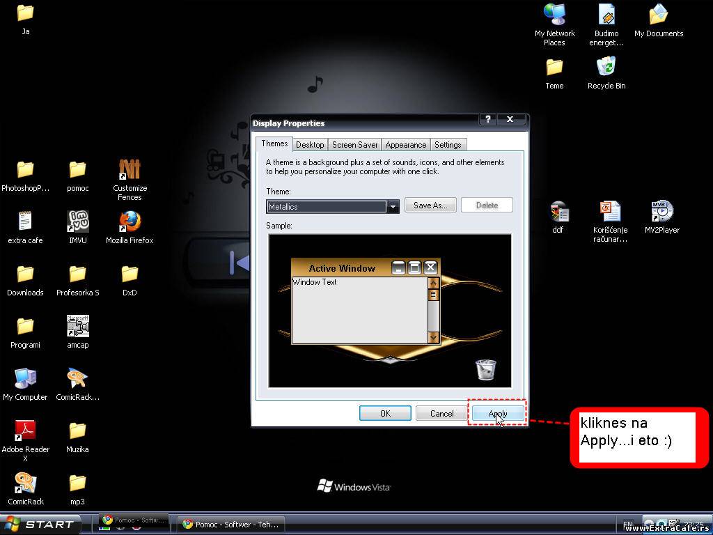 ovakoo...imam pitanje,kad hocu da promjenim teme za windows xp i kad ih unzip...meni se promjene samo tri ikone u neku drugu sliku,a start mi se promjeni u windows classic style a ne u te nove teme evo jedne slike,od neke teme logi