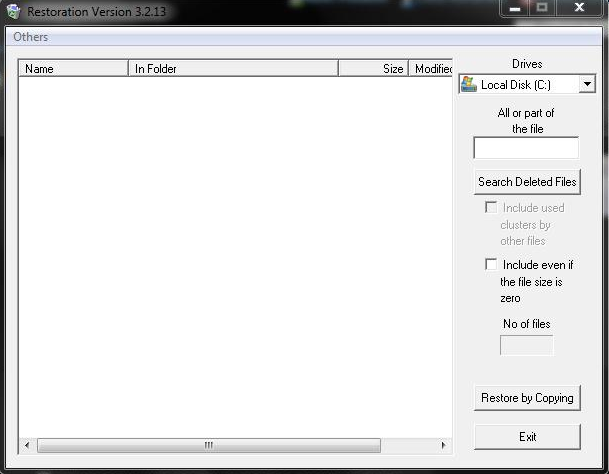 Potreban vam je Restoration 2.5.14 Download link Otvorite program..ovako izgleda : 1. Drives -------> odaberite Disc sa kojeg ste izbrisali.. 2. All or part of the file -------> unesite naziv datoteke koju trazite...a ako ne znate kako se zove mozete da preskocite ovaj dio... 3. Kliknite na Search Deleted Files 4. Kada vam nadje zeljeni fajl idite na Restore by Copying 5. Odaberite mesto i naziv fajl-a gde zelite da ga vratite i OK 6. Exit