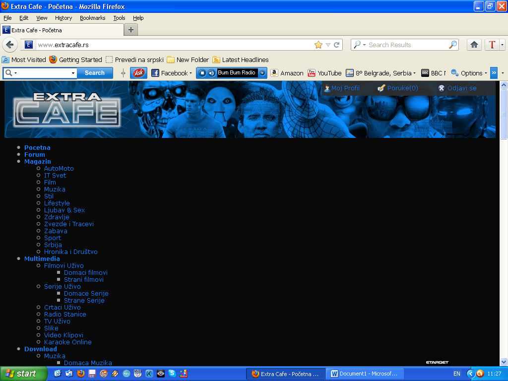 Evo ovako Kad otvorim extracafe pocetnu stranu pojavi mi se normalna slika koja izgleda ovako