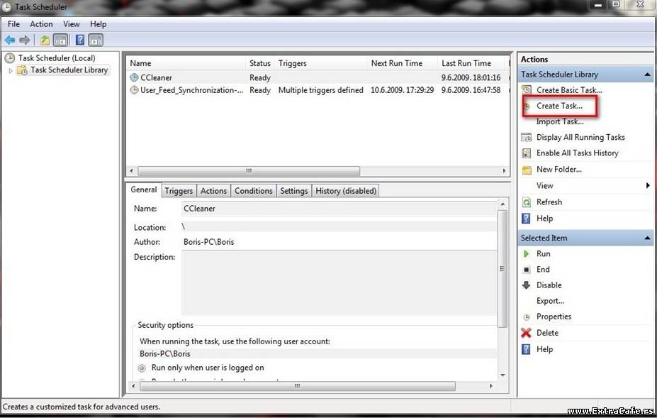 Pojedini programi poput CCleanera, Smarty Uninstallera, Everesta ne mogu biti pokrenuti bez javljanja UAC-a(naravno ako je uključen) no za zaobilaženje UAC-a postoji jednostavno rješenje. 1. Idi na start upiši taskschd.msc i lupi Enter. Otvoriti će se taskscheduler, u polje s desne strane klik na Create task.