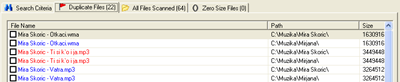 i pri dnu stranice kliknite na link "Download" kako bi preuzeli program (oko 1,7 mb). Kada ste ga preuzeli, prođite kroz lak proces instalacije i upalite program. 2. Kada ste upalili program, prvo što morate podesiti je putanja, tj. mesto gde da se pretražuju duplikati. Odaberite ili celu particiju ("C:/", "D:/", "E:/") ili neki direktorijum na njoj. U mom primeru, ja sam odabrao direktorijum "C:/Muzika" jer mi se tamo nalaze sve pesme. 3. Sada, kada ste pronašli direktorijum koji želite da skenirate za duplikate, ili više ukoliko imate muziku na više mesta, kliknite na dugme Kada ste i to odabrali, sa desne strane programa vam se nalaze opcije gde birate šta želite da pretražujete. U mom slučaju sam odabrao "File Search", kliknuo dugme "Select", odabrao "Music Data", potvrdio izbor ponovo sa dugmetom "Select" i obeležio prvu opciju ispod (Same Content - CRC), baš kao na primeru u slici ispod. Kao što se vidi na slici, program pretražuje duplikate među ekstenzijama .mp3, .wma, .ogg, .ape, .wav i druge 4. Na kraju, poslednji korak je da kliknete na veliko dugme "Go" kako bi započeli pretragu. Pretraga može da potraje, i zavisi od toga koliko imate fajlova i direktorijma koji trebaju da se "obrade". Kada je gotovo, dobićete obaveštenje kao na slici ispod. Tu vidite koliko je fajlova skenirano, koliko ukupno oni prostora zauzimaju na vašem hard disku, koliko njih je duplikat, i na kraju koliko duplikati zauzimaju prostora na vašem disku. 5. Nakon što ste pogledali rezultate, kliknite dugme "Close" da bi dobili spisak duplikata. U mom primeru, taj spisak izgleda ovako: 6. Sada vam ostaje jednostavno da označite duplikate sami (zapamtite da označavate svaku drugu, jer je jedna uvek "original" tj. ne želite da obrišete pesmu na oba mesta!), i kliknete dole na dugme "Remove Selected". Kada ste to uradili, dobićete još jedan prozor za potvrdu, gde ćete odabrati da fajlove brišete u korpu i kliknuti na dugme "Delete files". Primer opet u slici ispod: