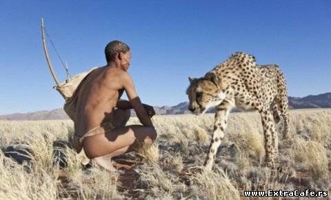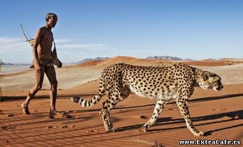 Najbolji čovekov prijatelj je - Gepard Iako slove za ubice u divljini, geparde je iznenađujuće lako pripitomiti. To se najbolje vidi na osnovu fotografija na kojima pripadnik nomadskog plemena San korača pustinjom Kalahari u društvu geparda koga je uspeo da pripitomi.